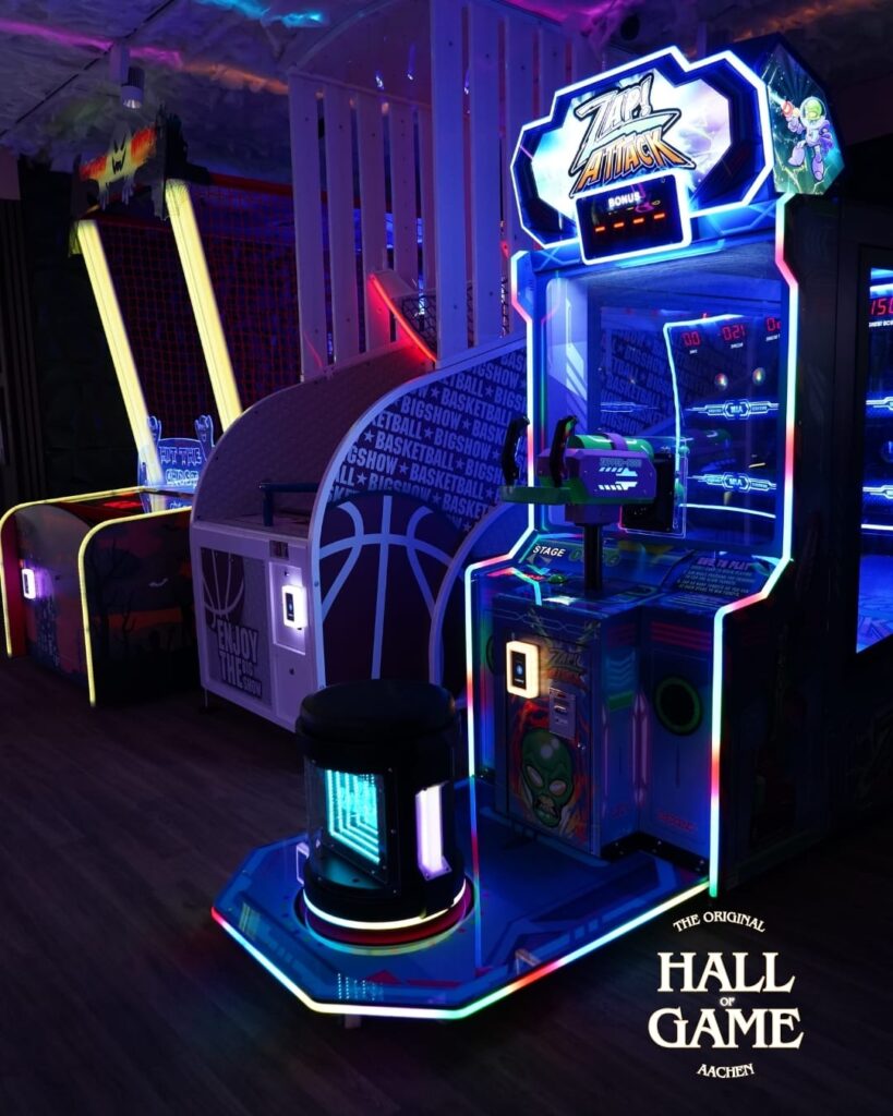 Ein aufregender Timing- und Kugelautomat. Eine gigantische Kugel rollt nach unten – und Du musst im richtigen Moment den Knopf drücken. Triffst Du das Jackpot-Loch, hagelt es Punkte wie nie zuvor! Die Punkte kannst Du dann an der Theke gegen Deinen Lieblingsgewinn eintauschen.