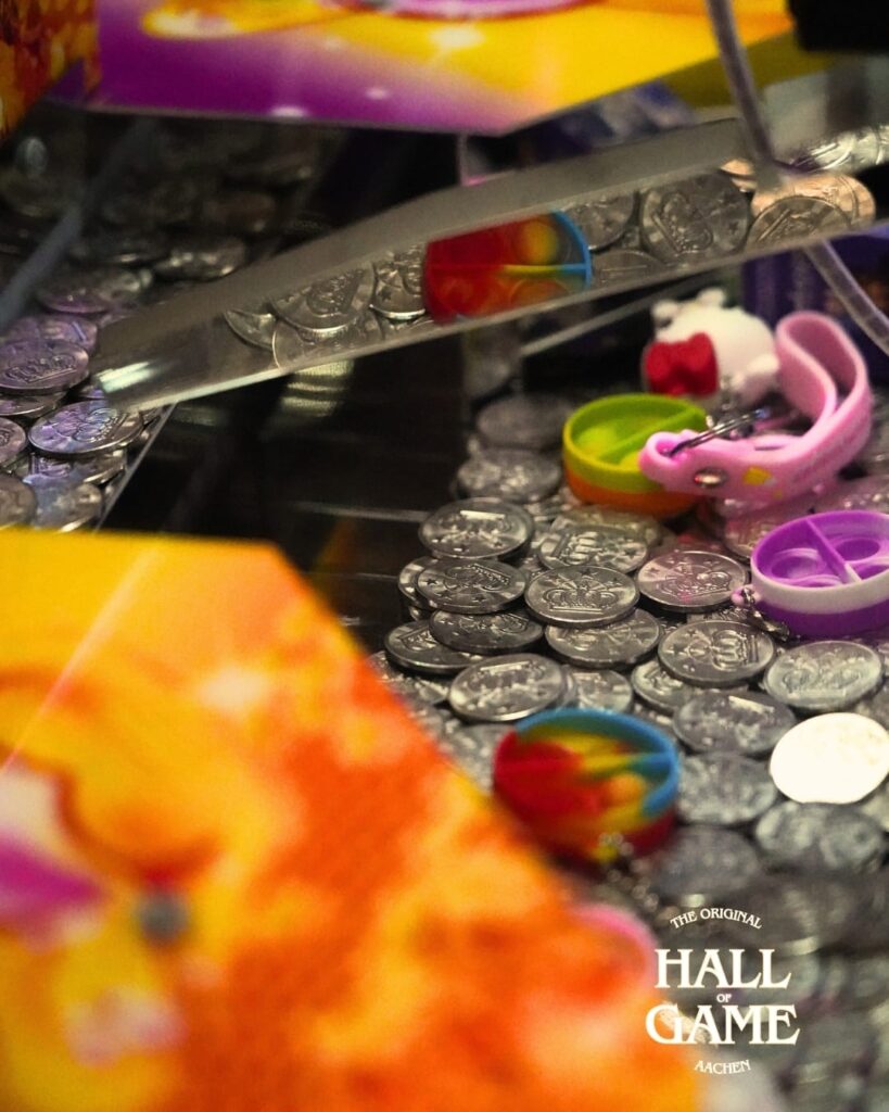 Ein traditioneller Münzschiebe-Automat. Wirf Deine Münze hinein und sieh zu, wie sie über die Plattform rutscht. Mit etwas Glück stößt sie andere Münzen nach vorne – und es regnet Preise oder neue Münzen für Dich. Einfach, spannend und immer wieder ein Überraschungsmoment.